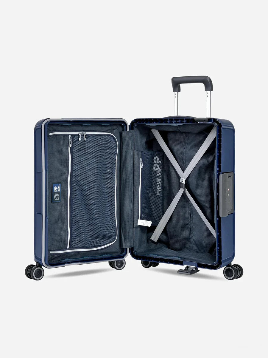 Der Eminent Vertica Kabinenroller überzeugt durch seine robuste Bauweise und durchdachte Ausstattung, die ideal für Vielreisende ist. Gefertigt aus 100 % Premium Polypropylen bietet er hohe Widerstandsfähigkeit und Schutz für Ihr Gepäck. Die Kombination aus Stabilität, Sicherheit und Komfort macht ihn zum perfekten Begleiter für Geschäfts- und Urlaubsreisen.